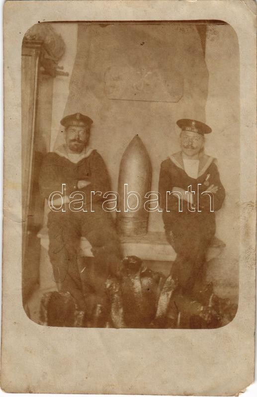 K.u.K. Kriegsmarine, SMS ADRIA (ex Radetzky), Matrosen / SMS ADRIA osztrák-magyar haditengerészet csavaros fregattjának matrózai egy 24 cm-es lövedékkel / Austro-Hungarian Navy screw frigate's mariners with a 24 cm shell. photo (EM)