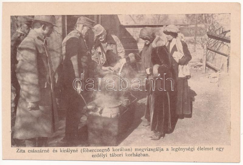 Kaiserin und Königin Zita (als Erzherzogin) prüft die Mannschaftskost in einem Feldspitale in Siebenbürgen / Zita császárné és királyné (főhercegnő korában) megvizsgálja a legénységi élelmet egy erdélyi tábori kórházban / WWI Austro-Hungarian K.u.K. military, Empress and Queen Zita of Bourbon-Parma (wife of Charles I of Austria) inspects the lunch of soldiers at a Transylvanian K.u.K. field hospital (vágott / cut)