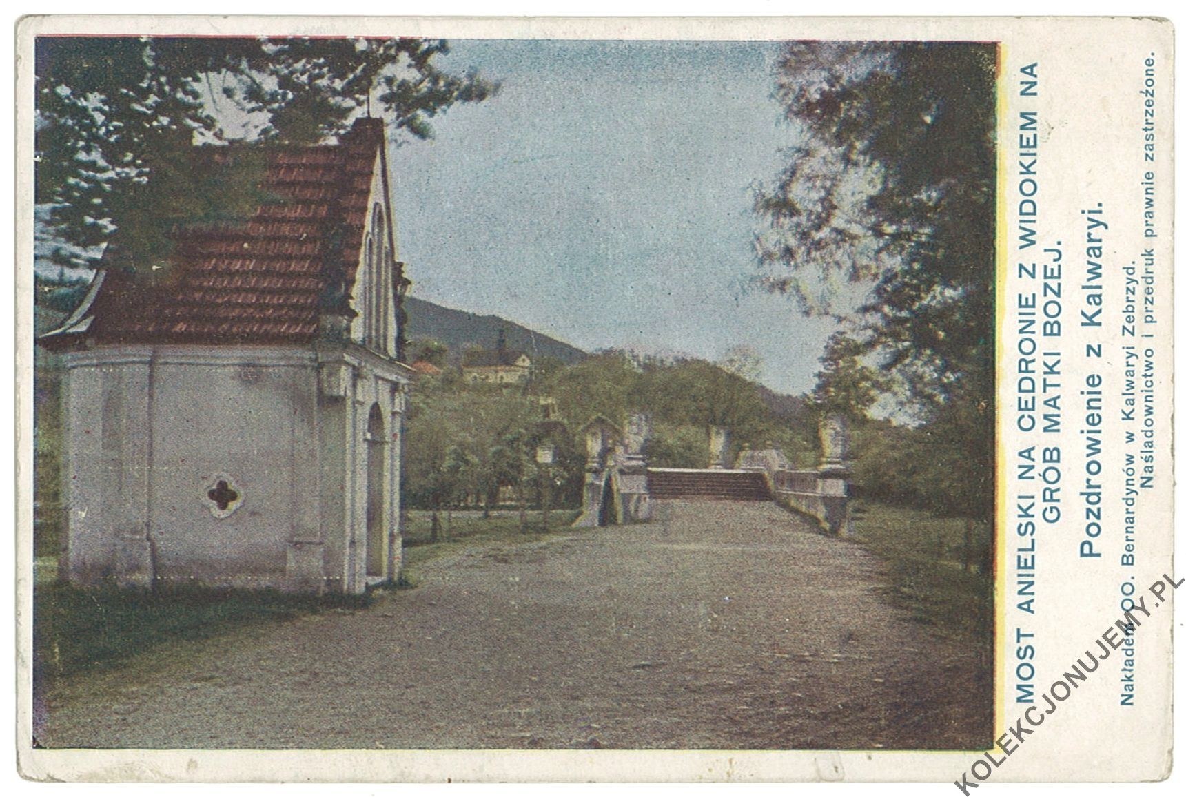 Opis: MOST ANIELSKI NA CEDRONIE Z WIDOKIEM NA GRÓB MATKI BOŻEJ. Pozdrowienie z Kalwaryi (fot. T. Rząca)