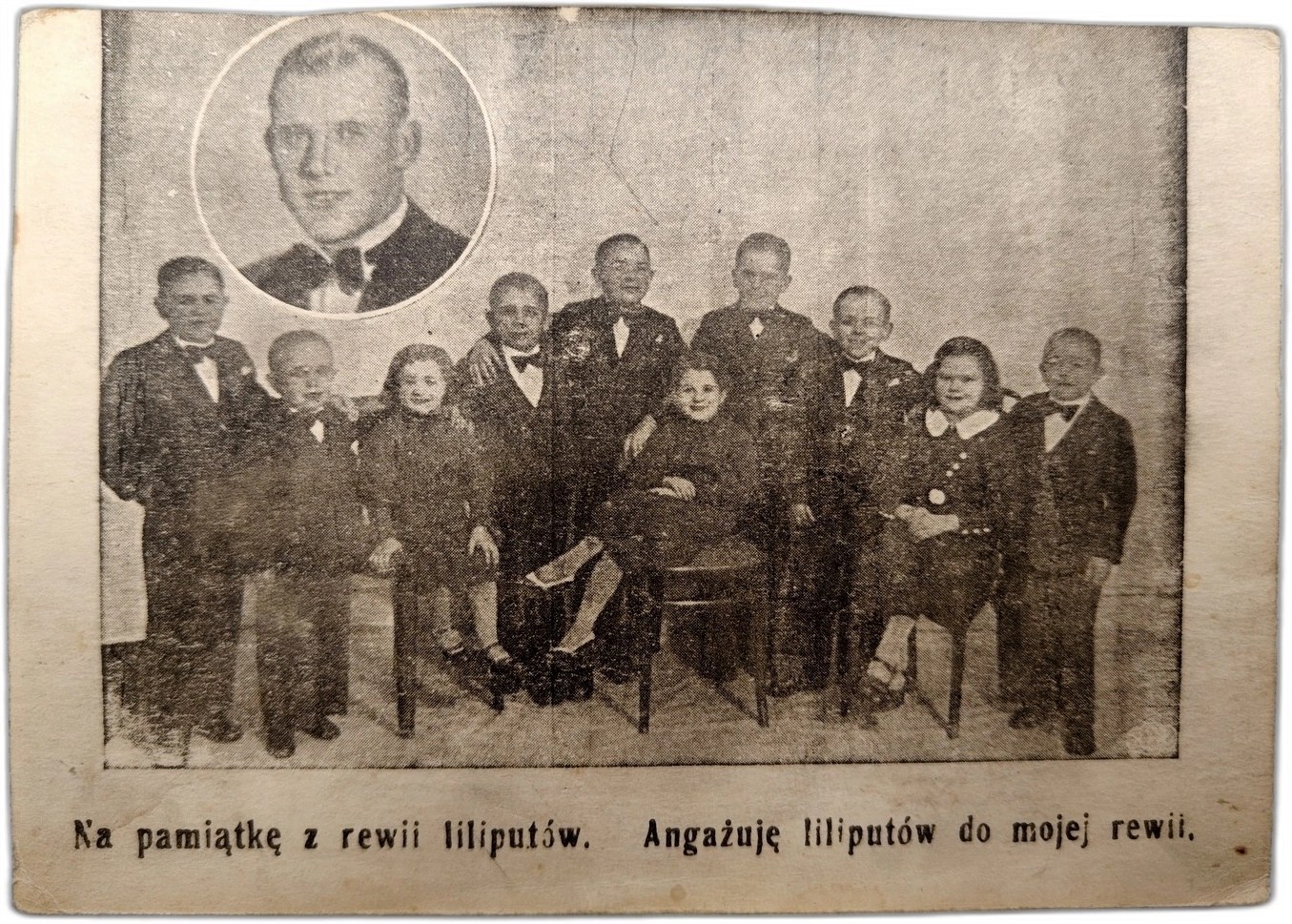 Karta pamiątkowa - Rewia liliputów, Walter Sitek, Katowice ok. 1930 roku