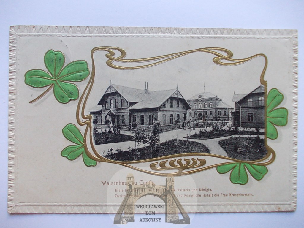 Kąty Wrocławskie, Canth, sierociniec, secesyjna ramka, 1908