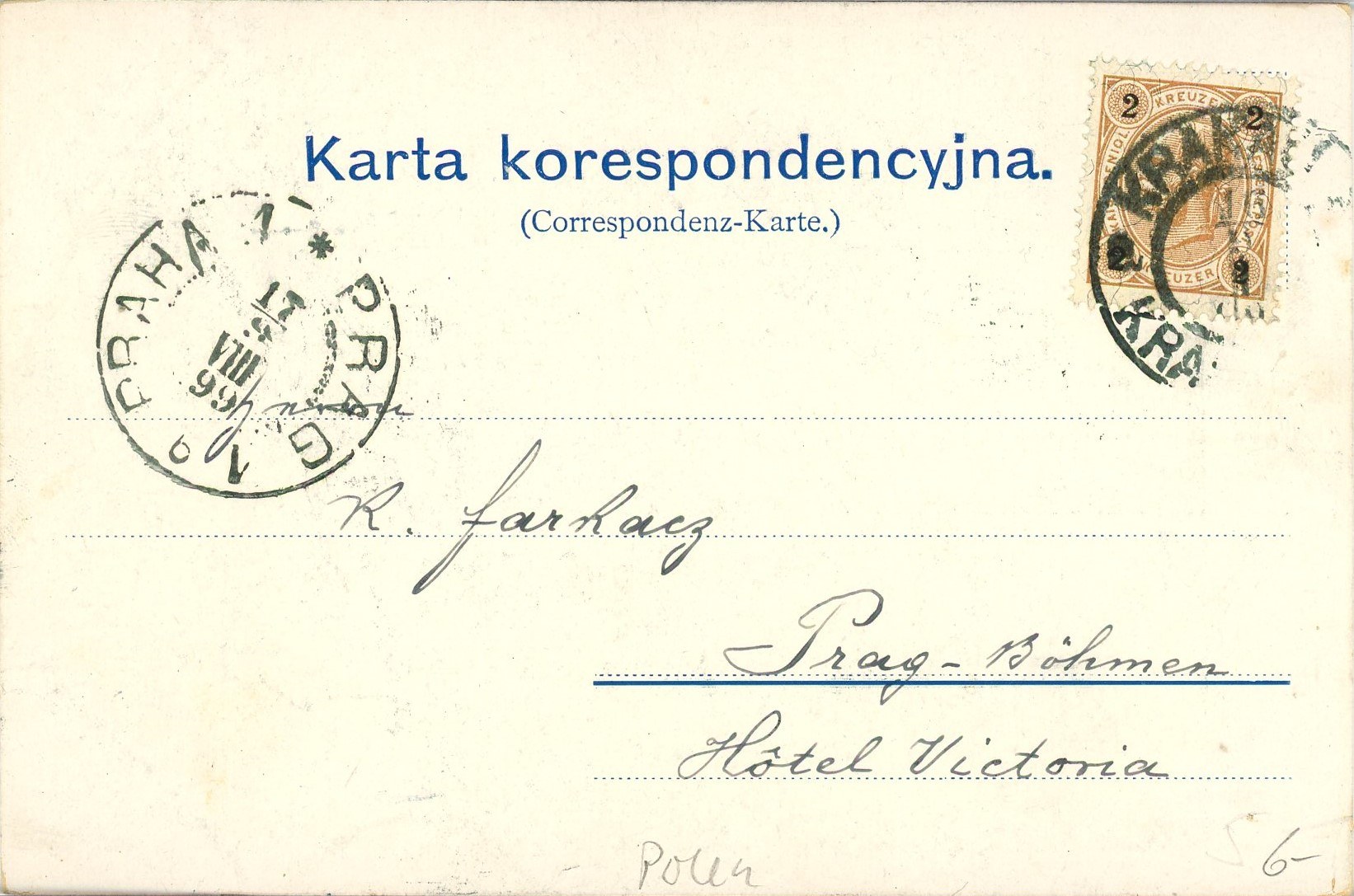 Wydawnictwo Salonu Malarzy Polskich w Krakowie. Kartka zapisana, dat. 16.9.1899 r. Stan bardzo dobry.