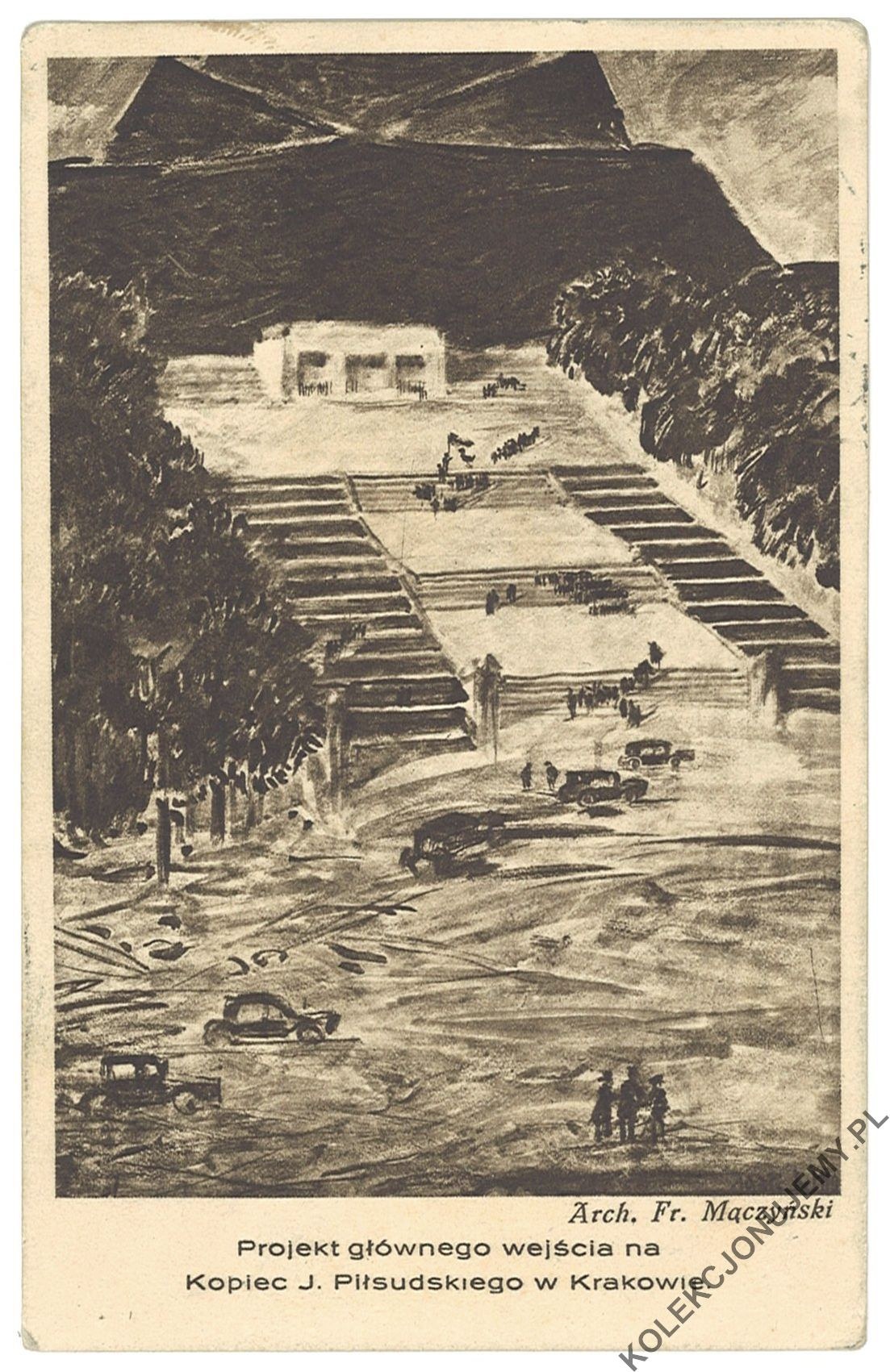 Opis: Projekt głównego wejścia na Kopiec J. Piłsudskiego w Krakowie (Arch. Fr. Mączyński)
