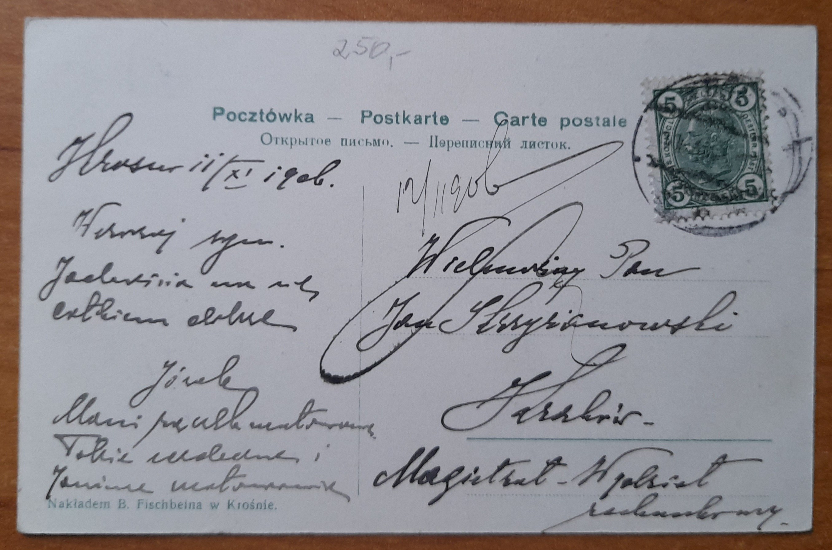 Krosno.Poczta i rada powiatowa.Nakładem B.Fischbeina w Krośnie.Obieg 1906 r.Stan bdb.