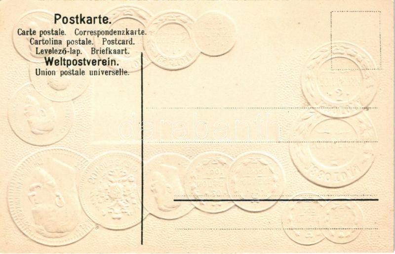 La Russie, pavillon national / Oroszország - érmék és zászló. Dombornyomott / Russian coins and flag. Emb. litho (lyuk / pinhole)
