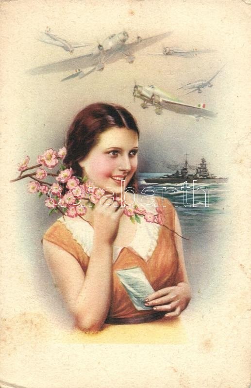 Lady with flowers and military aeroplanes, Cecami No. 1023. (b)