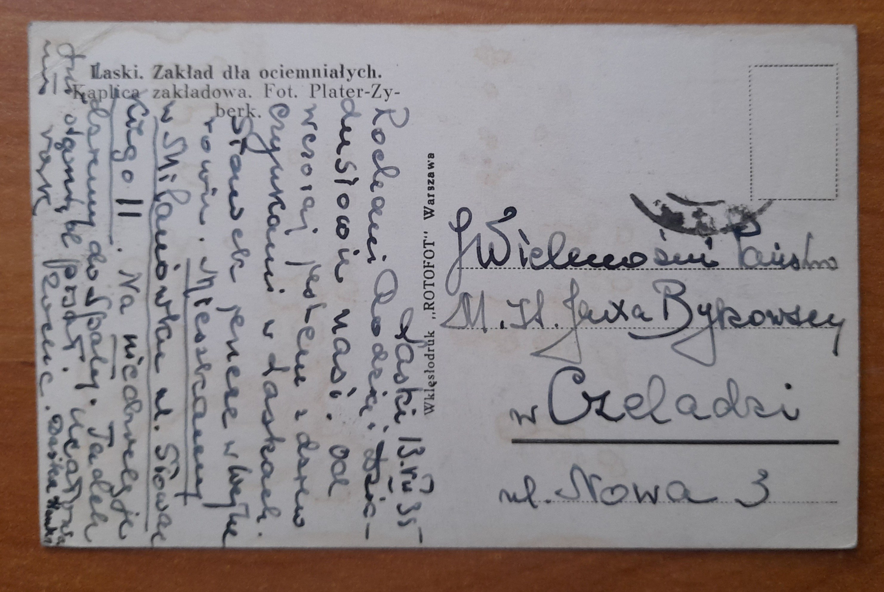 Laski.Zakład dla ociemniałych.Obieg 1935 r,bez znaczka.Stan bdb.