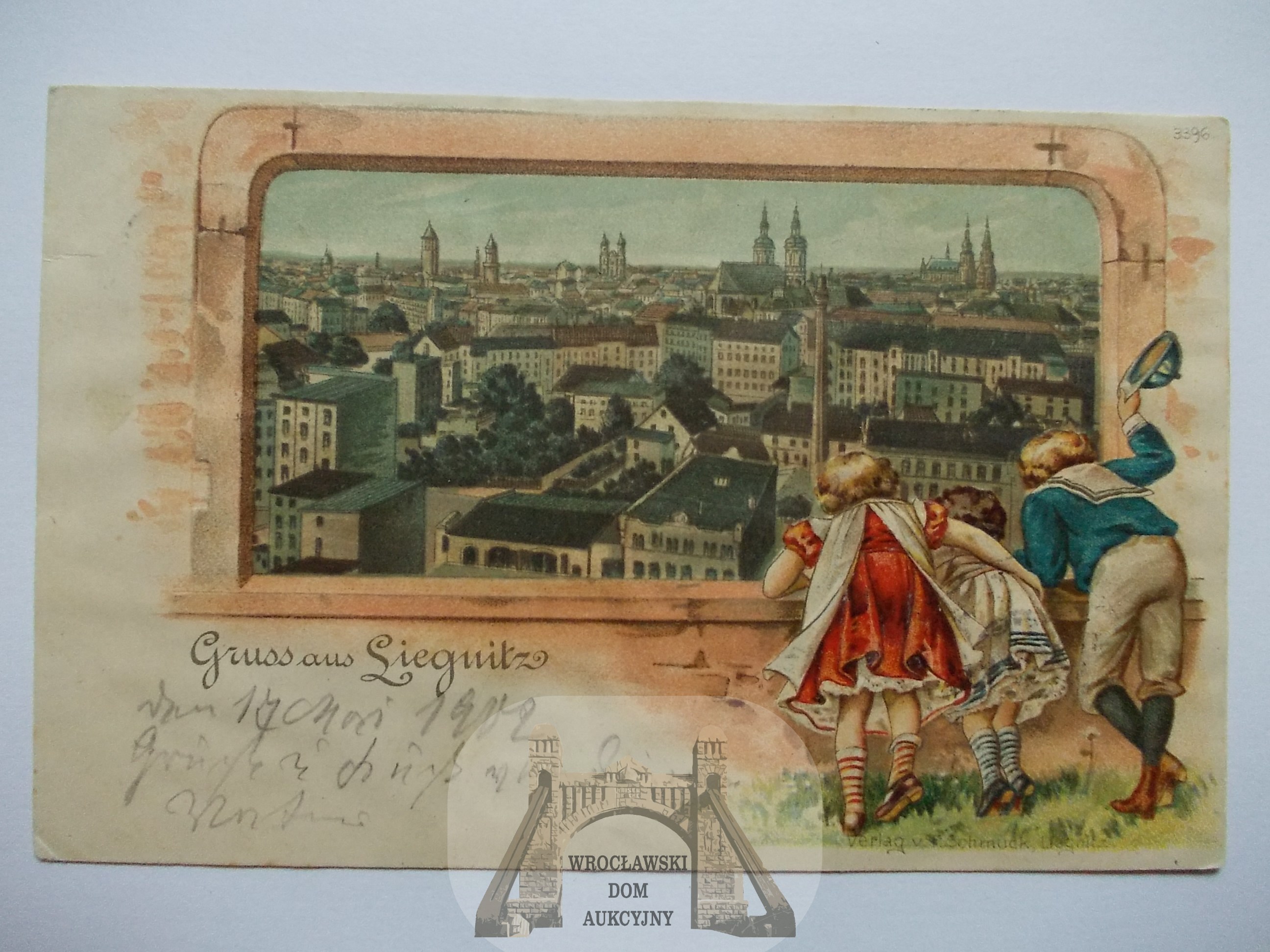 Legnica, Liegnitz, litografia, tłoczona ramka,1902