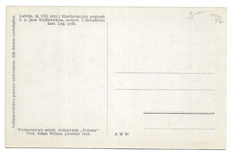 Wydawnictwo artyst. widokówek "Polonia". Prof. Adam Wilusz, Jarosław. 1916. Fot. E. v. Benninghoven. Na odwrocie nadruk "A W 87". Bez korespondencji. Stan dobry.