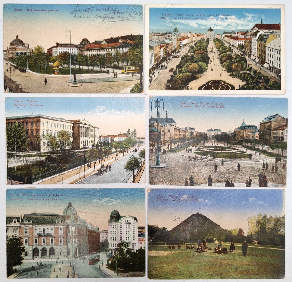 Lot 6 pocztówek : Lwów - Lemberg - Ulica Karola Ludwika, Technikum i inne