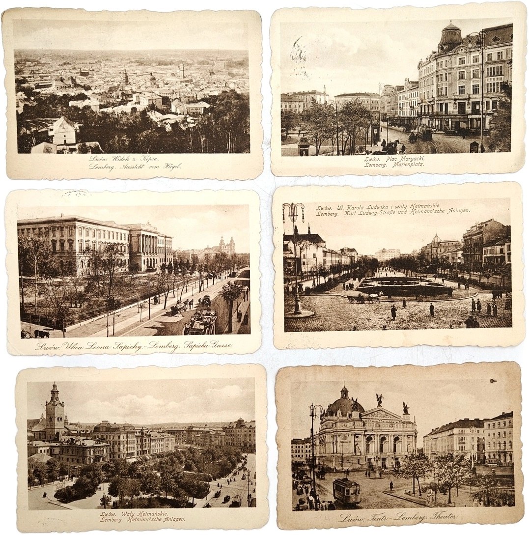 Lot 6 pocztówek : Lwów - Lemberg - Wały Hetmańskie, Teatr, i inne