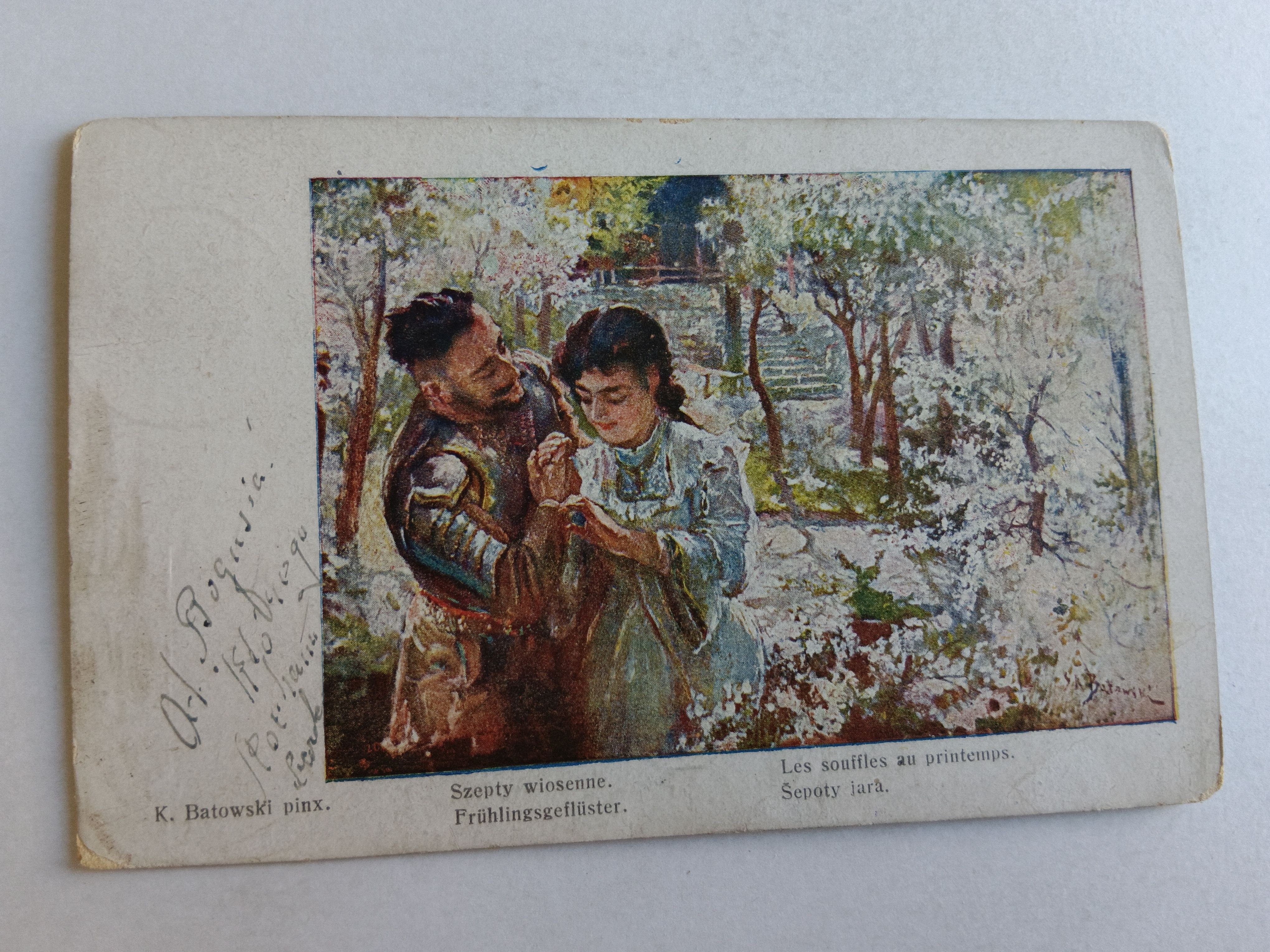 MALARSTWO POLSKIE BATOWSKI SZEPTY WIOSENNE ZNACZEK STEMPEL, 1919 R