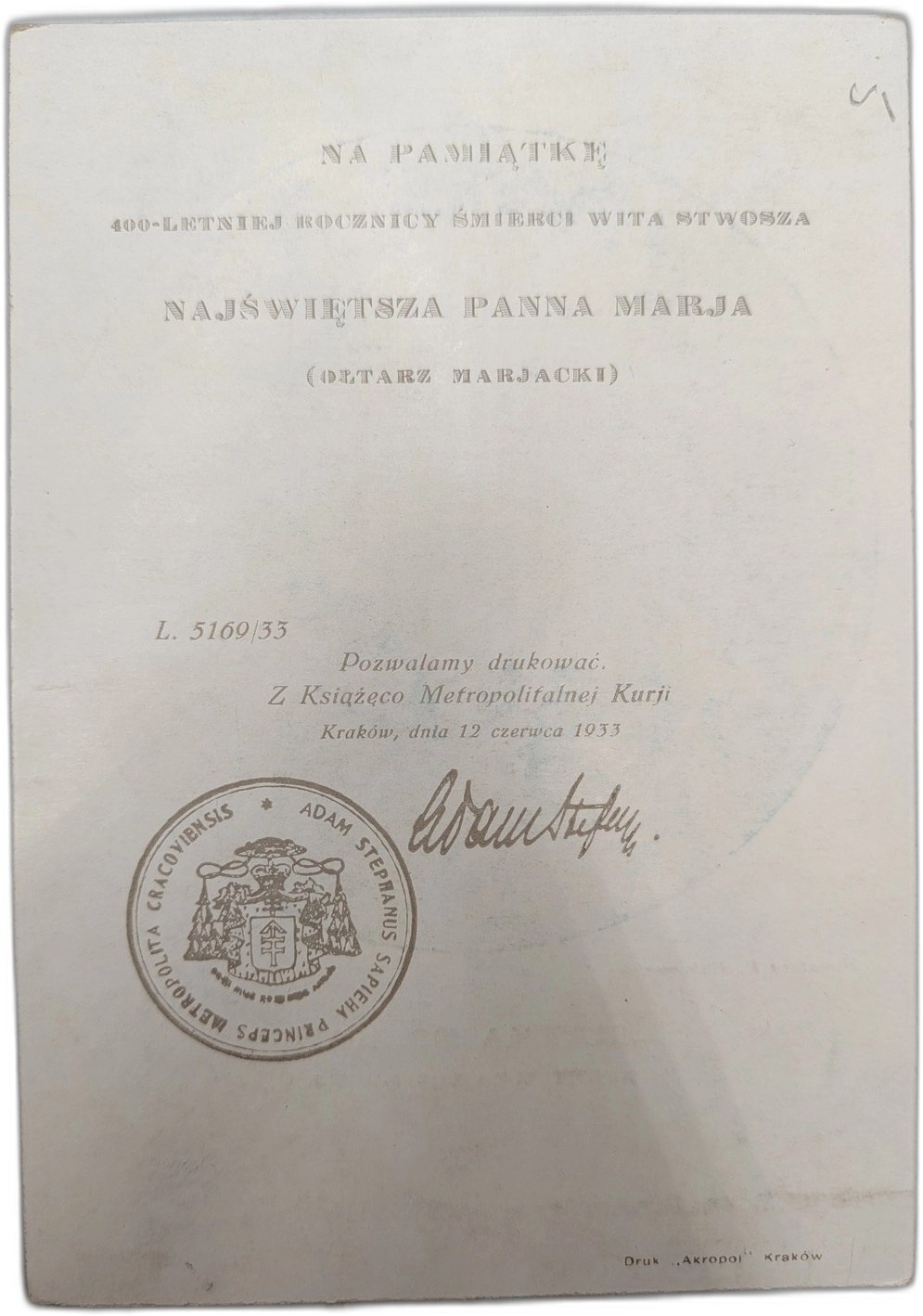 Matka Boska Ziemi Krakowskiej, miniatura K. Dąbrowskiej, pamiątka śmierci Wita Stwosza