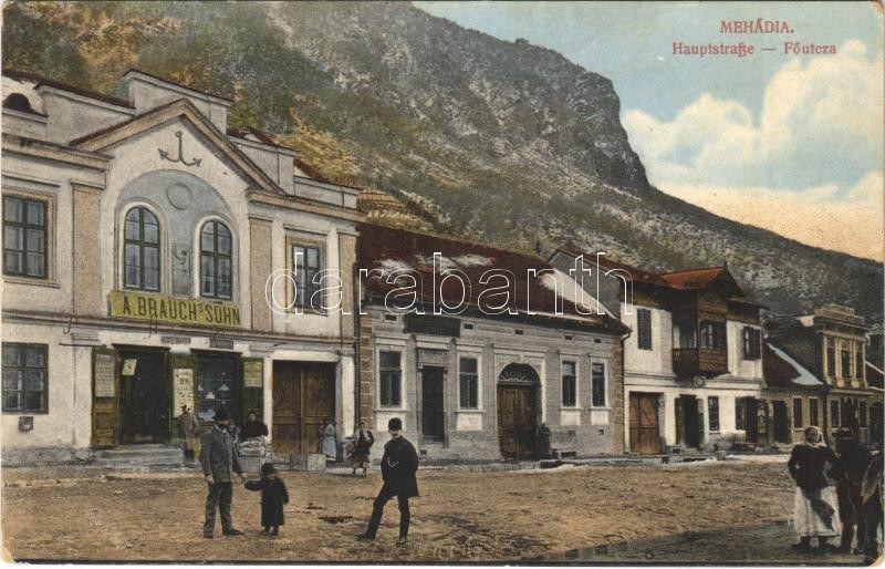 Mehádia, Fő utca, Brauch A. fia üzlete és saját kiadása / A. Brauch's Sohn / main street, shop