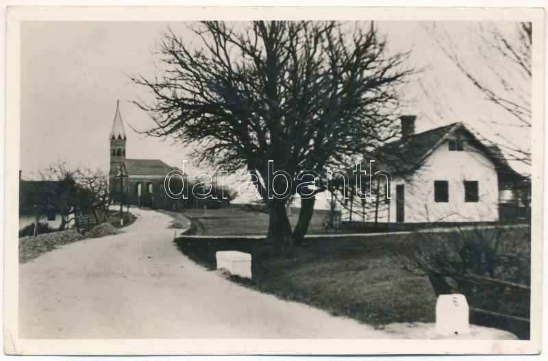 Nagytótlak, Lak, Lakszentmiklós, Selo; utcakép a templommal / street view with church (EK)