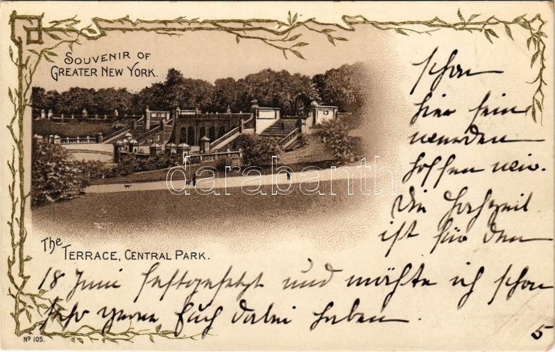 New York, Souvenir of Greater New York. Central park, the terrace. No. 105. Art Nouveau, litho (EB)