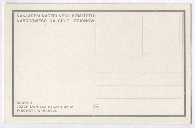 Nakładem Naczelnego Komitetu Narodowego na cele Legionów. Nie po 1917. Bez korespondencji i znaczka. Stan bardzo dobry.