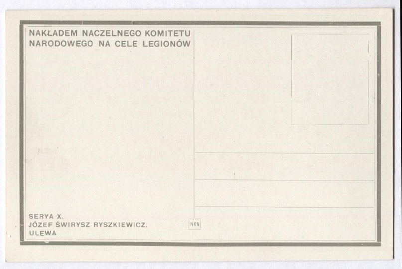 Nakładem Naczelnego Komitetu Narodowego na cele Legionów. Nie po 1917. Bez korespondencji i znaczka. Stan bardzo dobry.