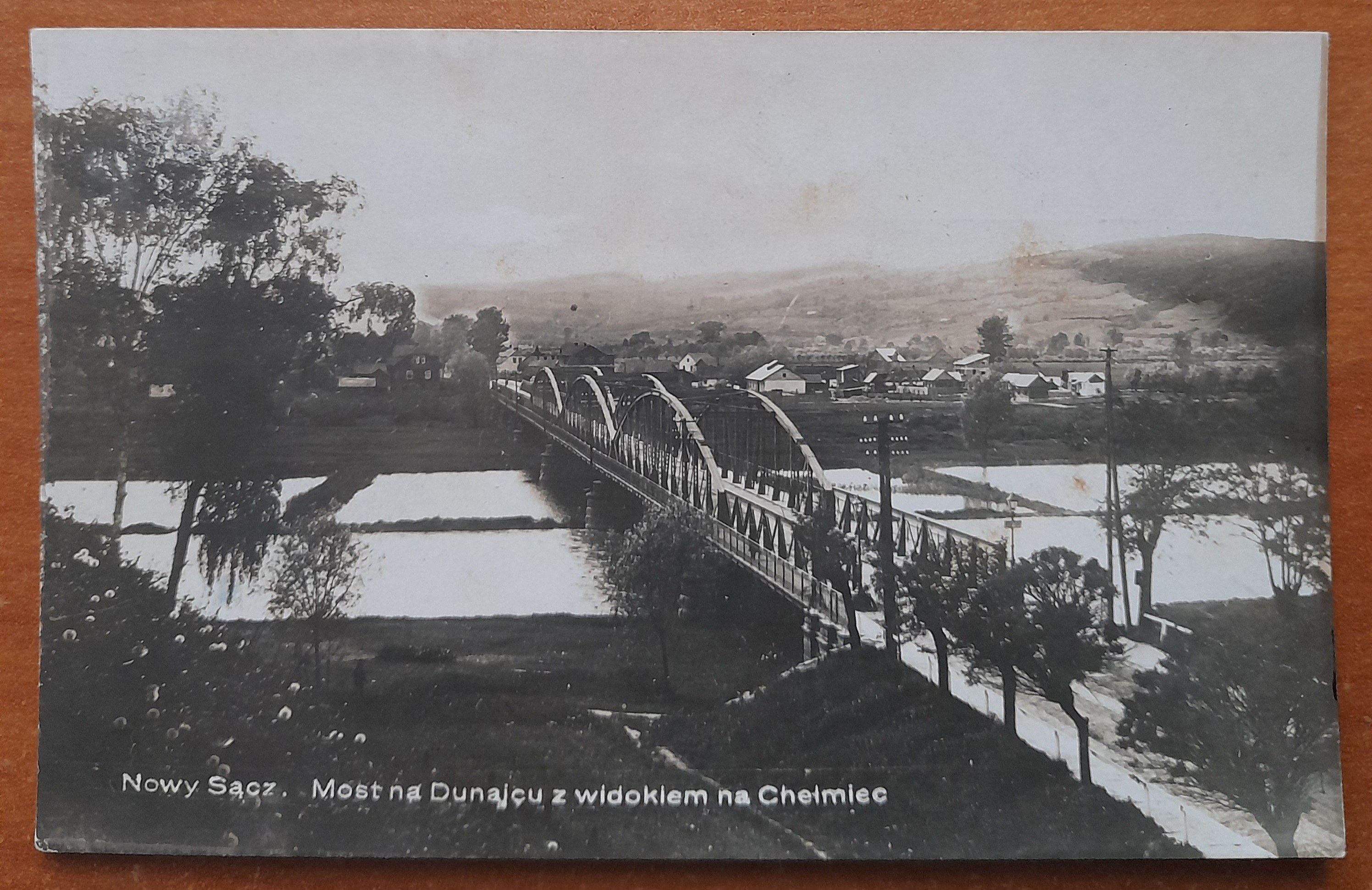 Nowy Sącz.Most na Dunajcu z widokiem na Chełmiec.