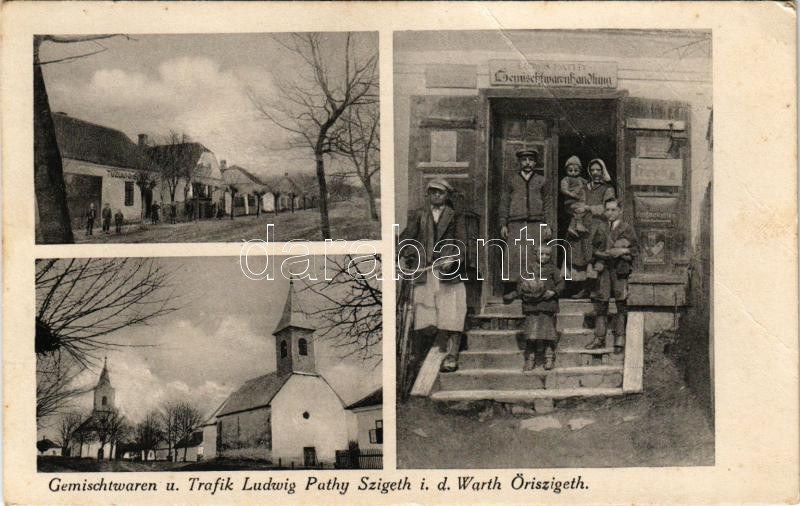 Őrisziget, Sziget; Siget in der Wart; Gemischtwaren und Trafik Ludwig Pathy Szigeth i.d. Warth Öriszigeth / üzlet ...