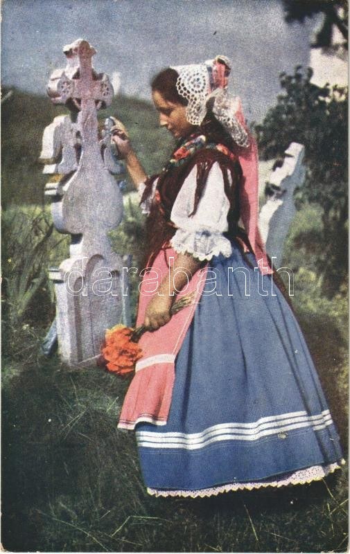 Palócmenyecske a temetőben Nógrád megyében. Jókai rt. Orig. Autochrom. Dr. Ebner / Hungarian folklore in the cemetery