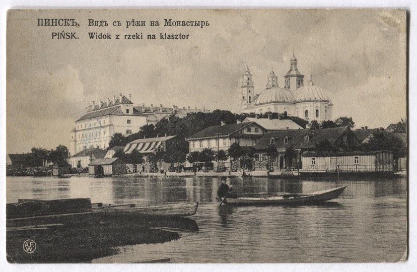 [PIŃSK]. Pinsk. Vid s reki na Monastyr [cyrylicą]. Pińsk. Widok z rzeki na klasztor.