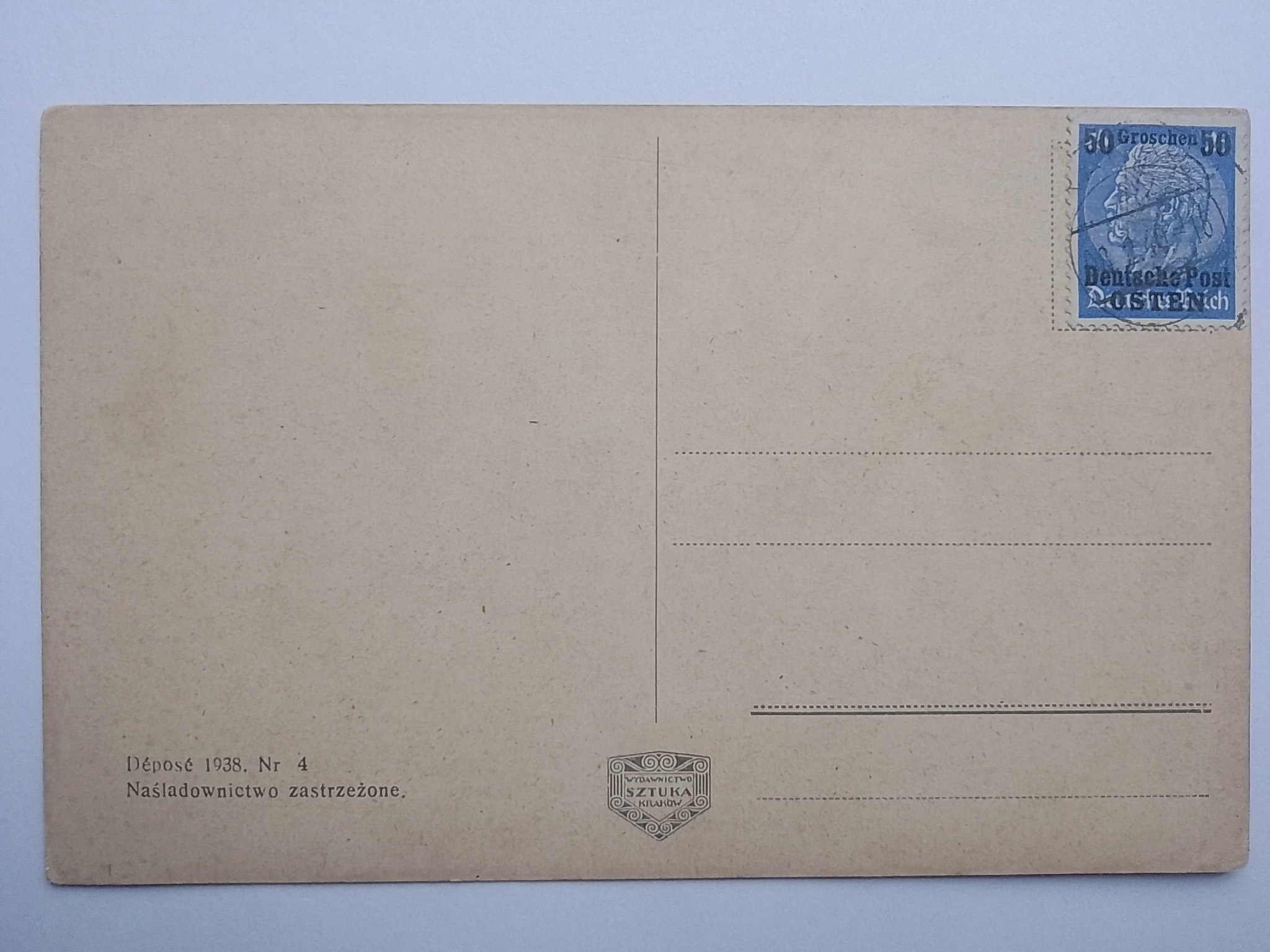 Przedmiotem licytacji jest oryginalna pocztówka. Stan zachowania oraz obieg widoczny na fotografiach, brak wad ukrytych.