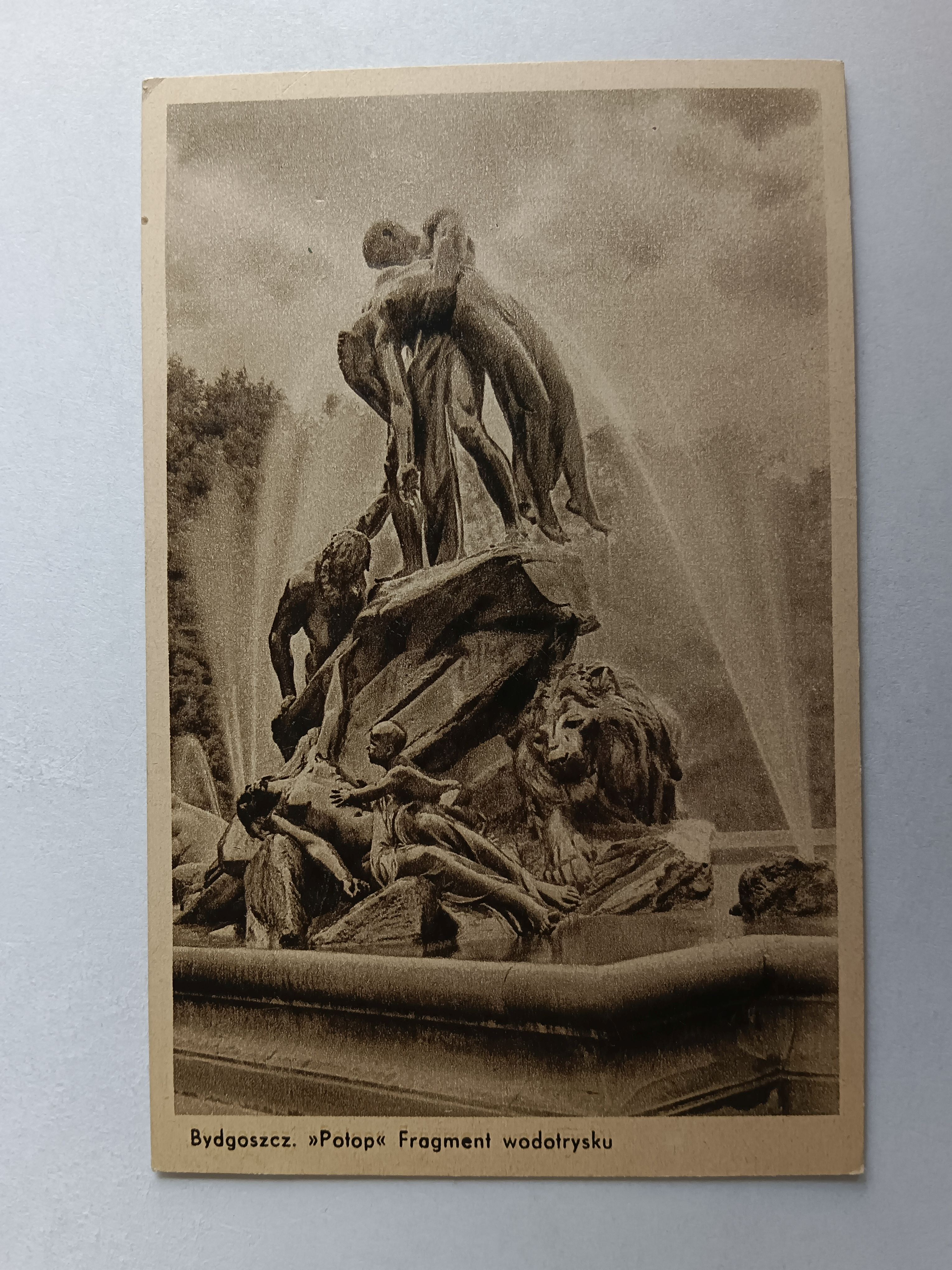 POCZTÓWKA BYDGOSZCZ POTOP FRAGMENT WODOTRYSKU PRZEDWOJENNA