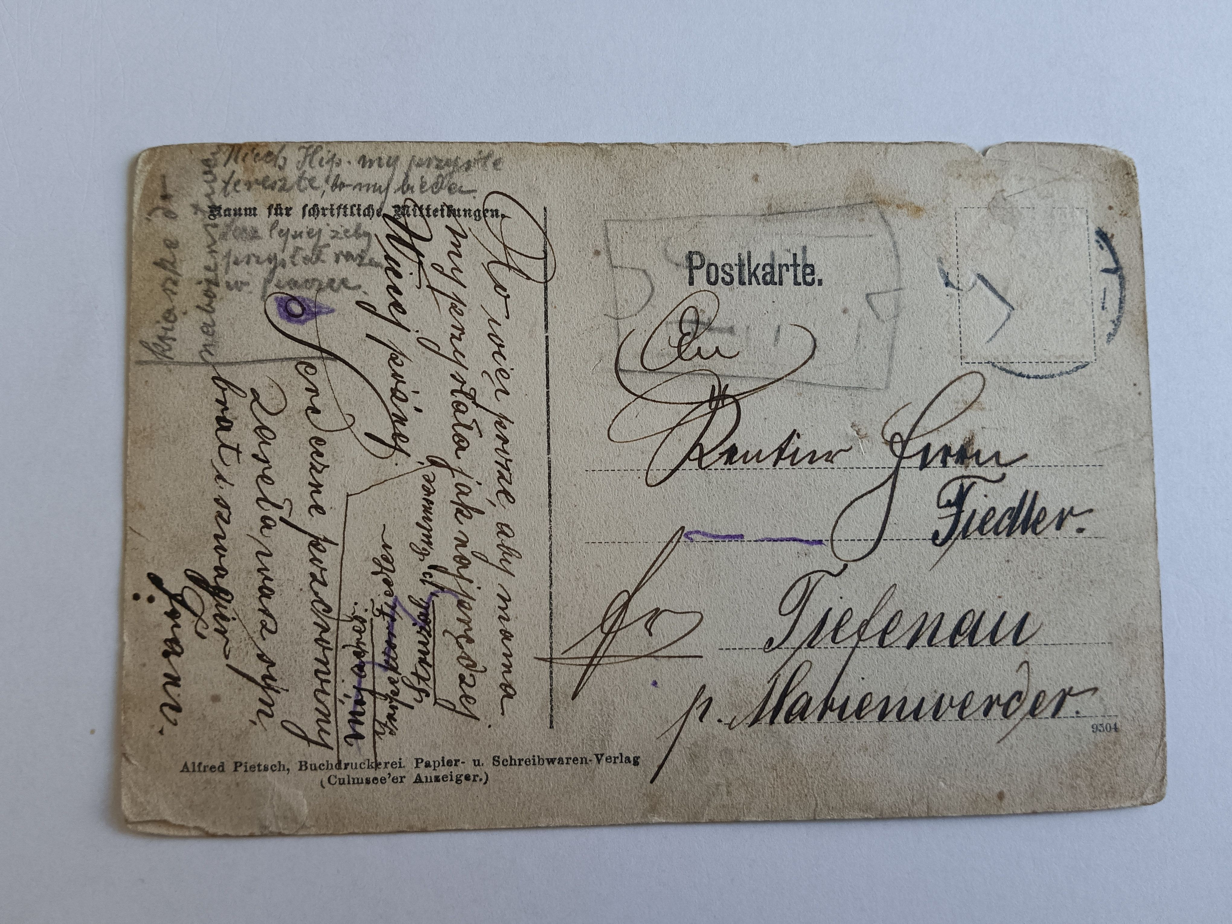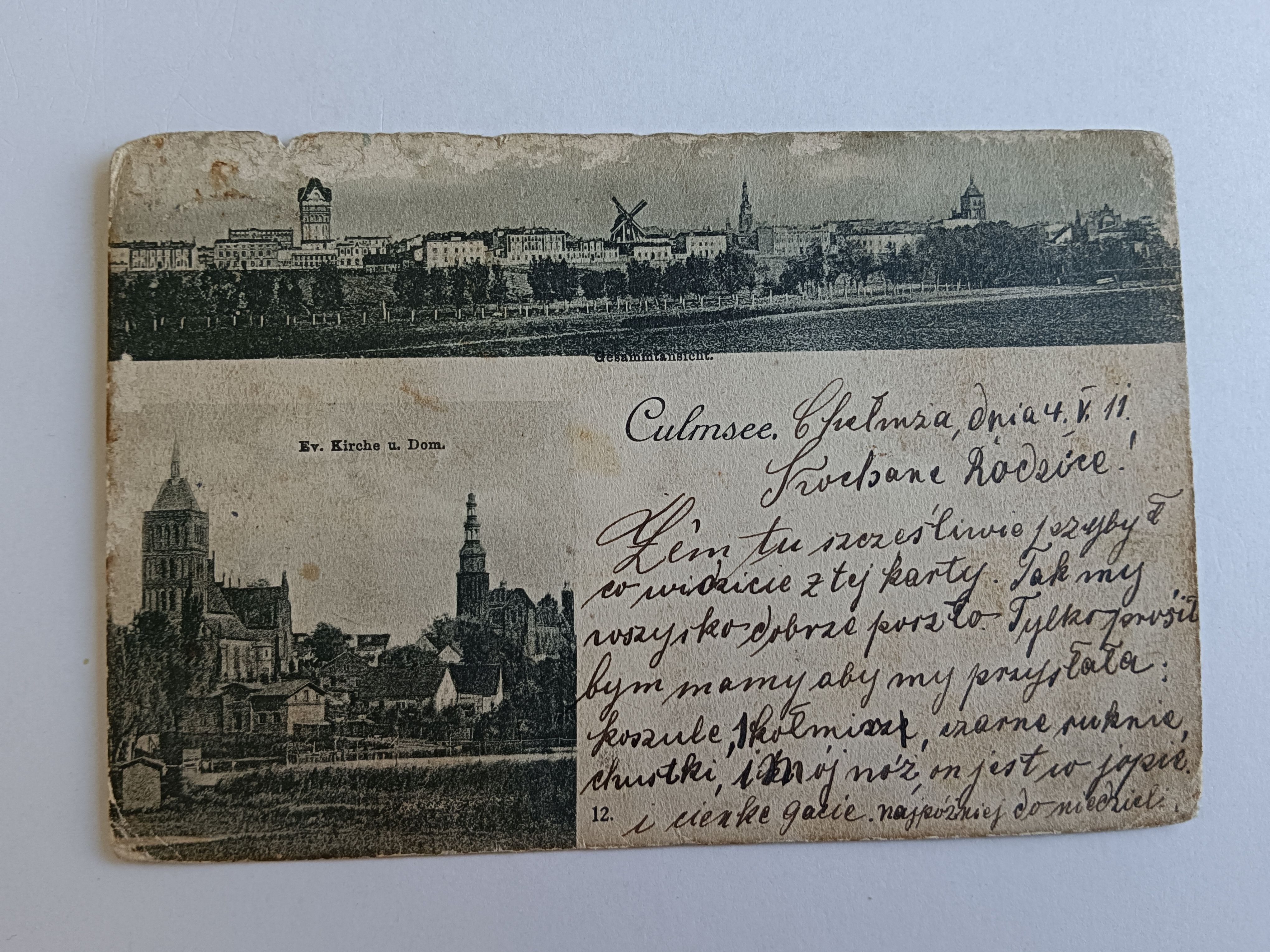 POCZTÓWKA CHEŁMŻA CULMSEE, DŁUGI ADRES, PRZEDWOJENNA, 1911 R