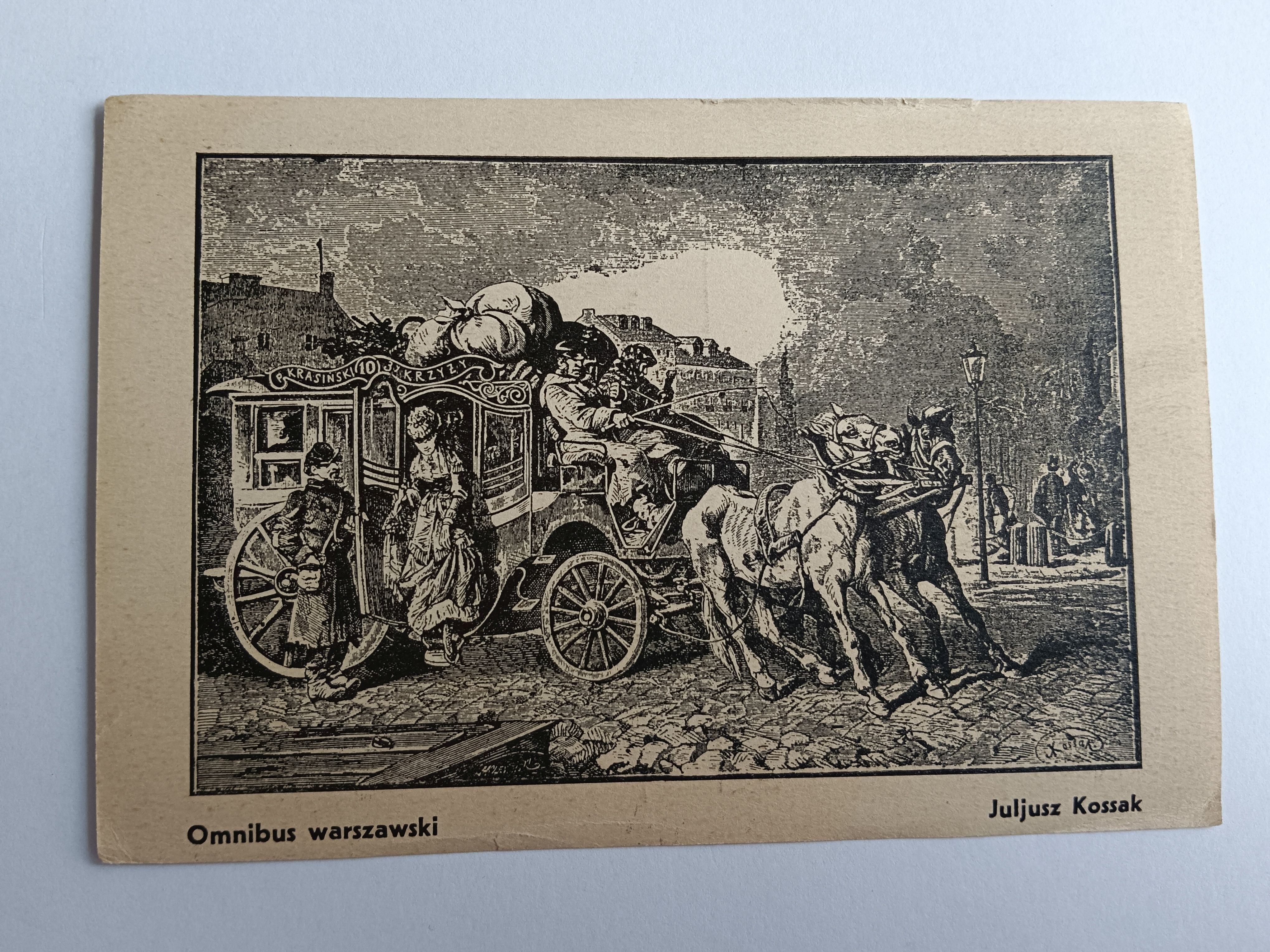 POCZTÓWKA MALARSTWO POLSKIE, DRZEWORYT, OMNIBUS WARSZAWSKI, JULIUSZ KOSSAK, STEMPEL, 1939 R, TYDZIEŃ WARSZAWY