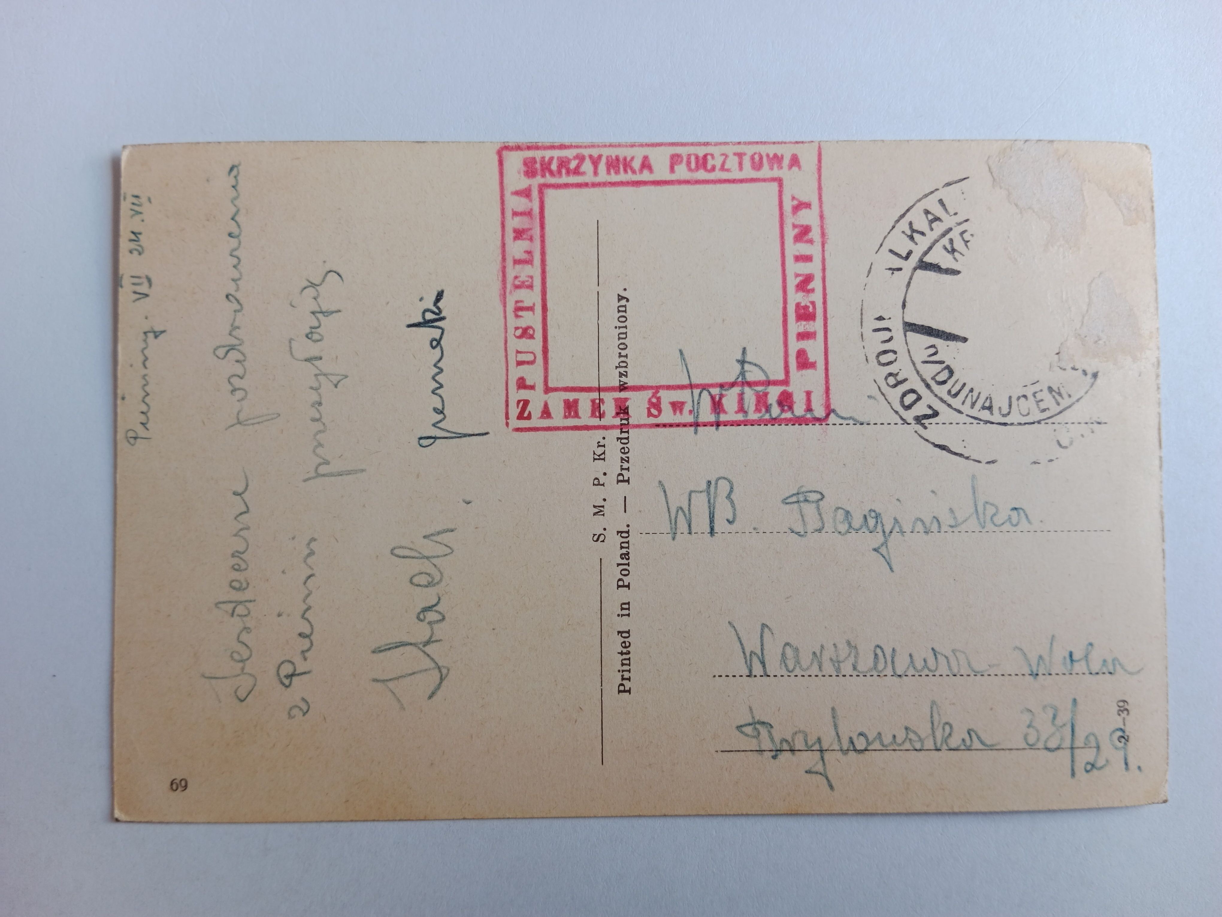 POCZTÓWKA PIENINY PUSTELNIA NA RUINACH ZAMKU BŁ KINGI GROTA BŁ KINGI PIECZĄTKA
