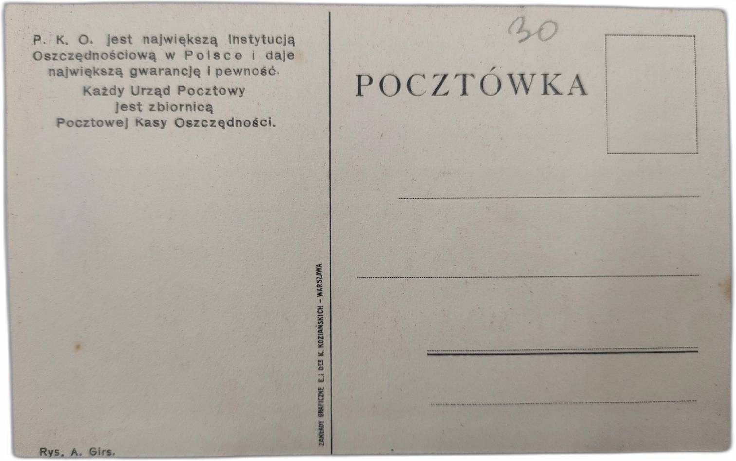 Pocztówka - Pocztowa Kasa Oszczędności - Oszczędność i praca ludzi wzbogaca - PKO, ca. 1930