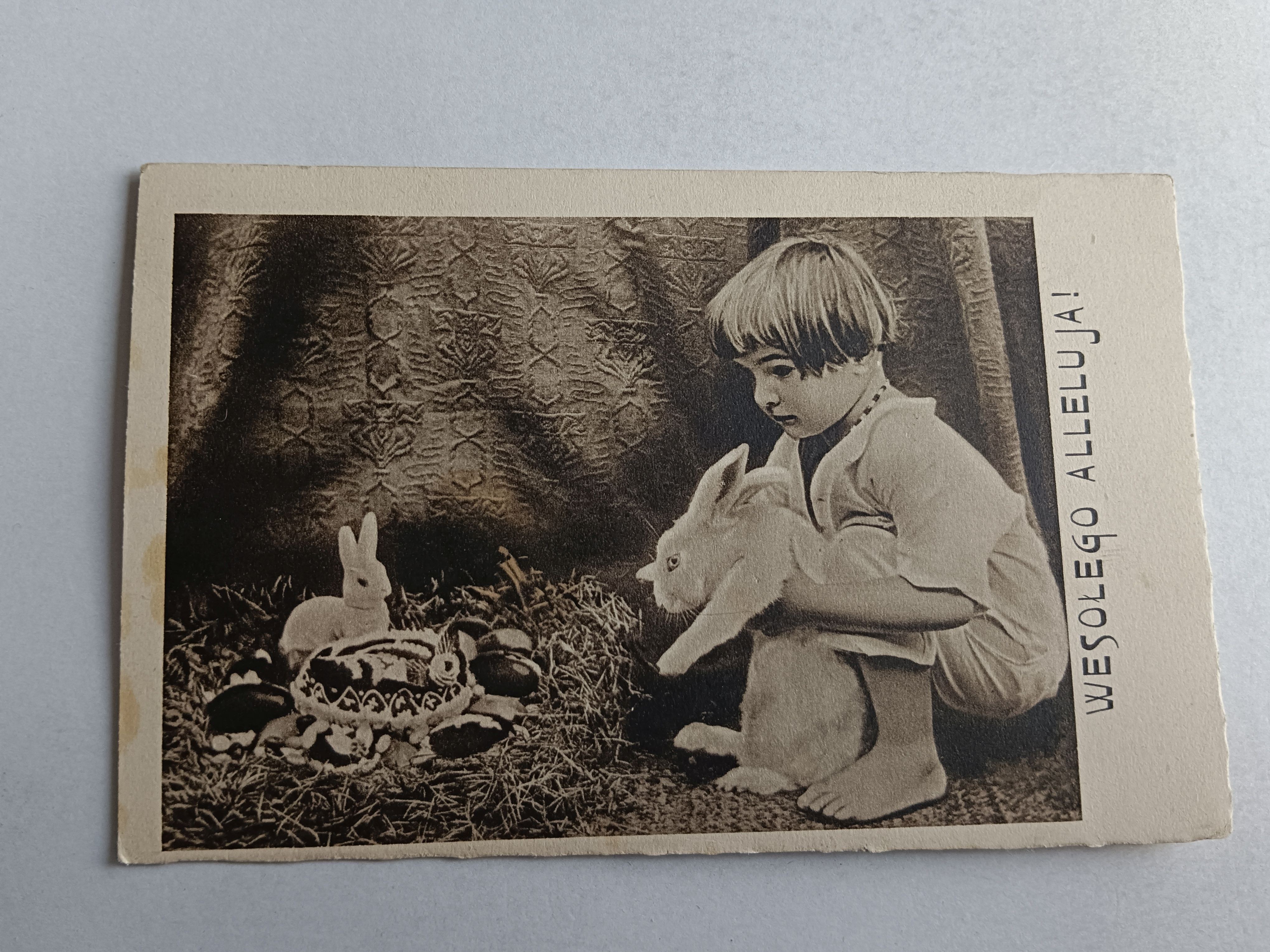 POCZTÓWKA ŚWIĄTECZNA WIELKANOC, STEMPEL DĄBROWA GÓRNICZA, DZIECKO, ZAJĄC