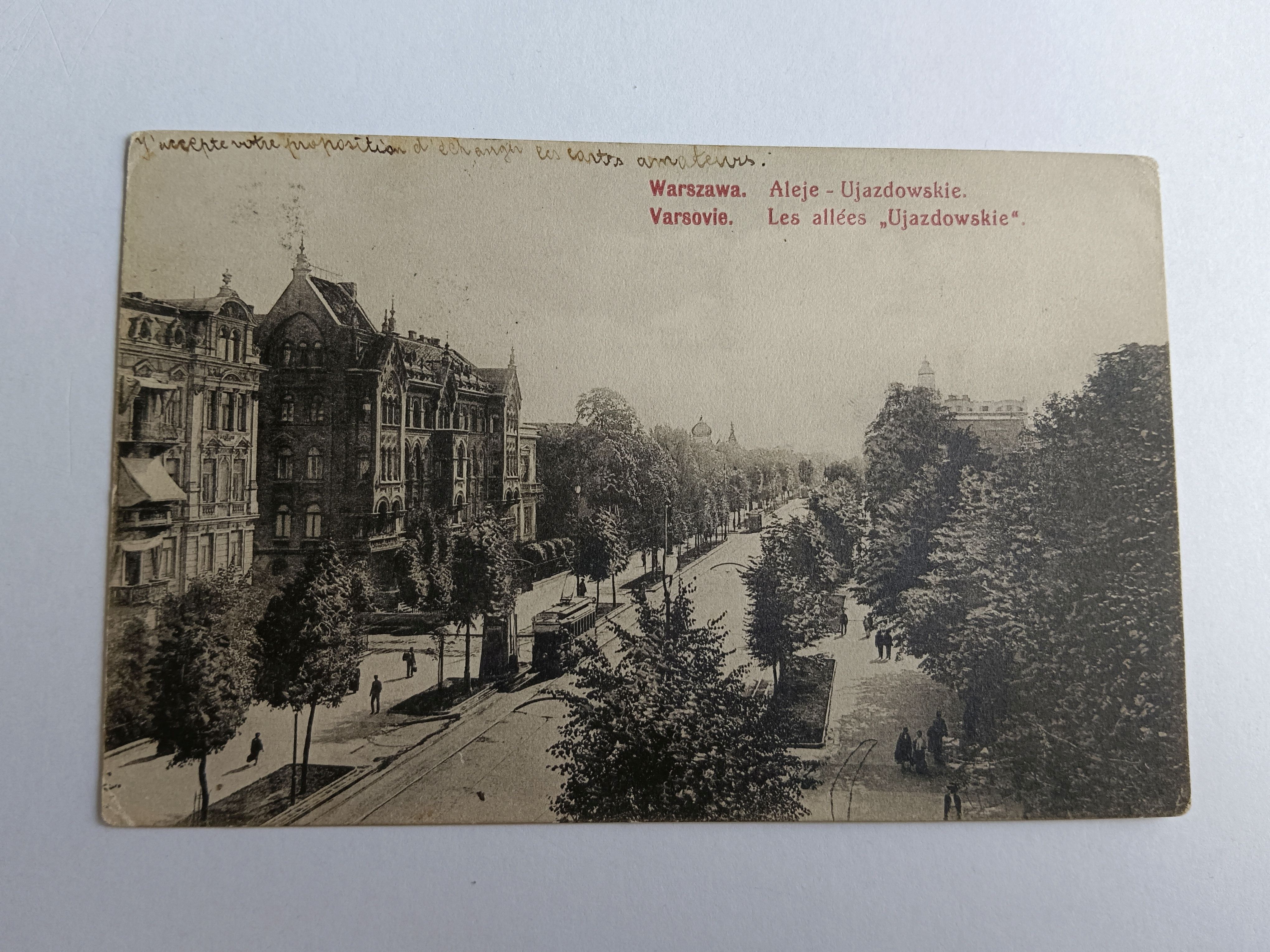 POCZTÓWKA WARSZAWA, VARSOVIE, ALEJE UJAZDOWSKIE, PRZEDWOJENNA 1916 R, STEMPEL, ZNACZEK
