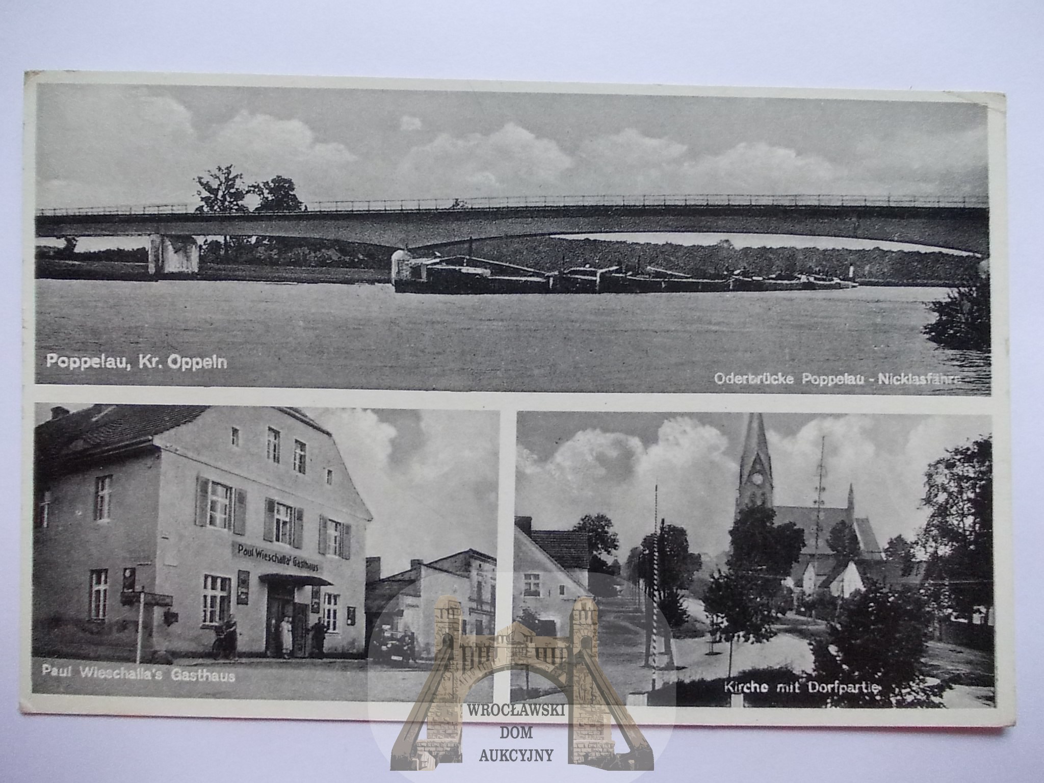 Popielów k. Opole, gospoda, kościół, most, ok. 1930