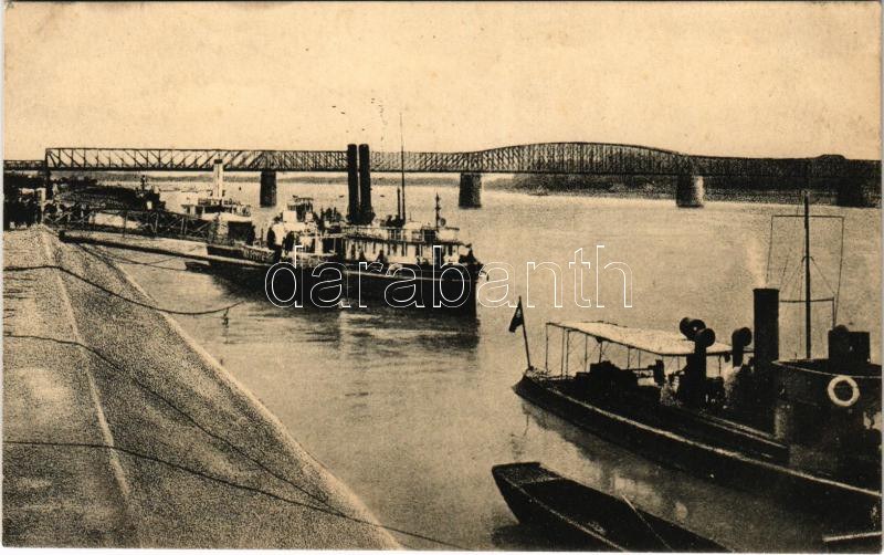 Pozsony, Pressburg, Bratislava; Magyar Királyi Folyamőrség őrnaszádja a Dunaparton ...
