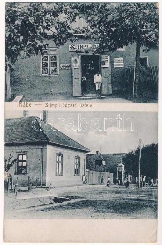 Rábé, Rabe (Törökkanizsa); Stimpl József üzlete ("Mauthner Magvak a legjobbak" reklám), Fő tér / shop, main square (EK...