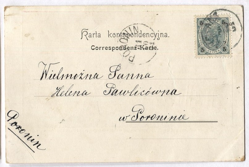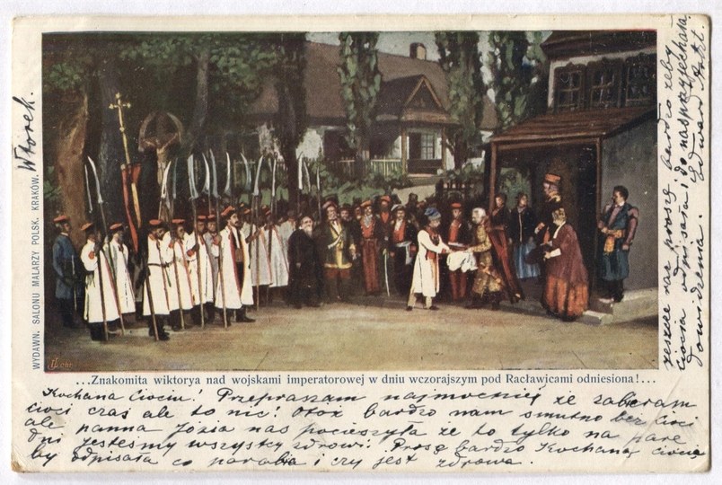 Wydawn. salonu malarzy polsk. Kraków. Z korespondencja i znaczkiem. Data stempla: 31 X 1901. Otarcia narożników, niewielkie zagięcia narożników - efekt przechowywania w albumie.