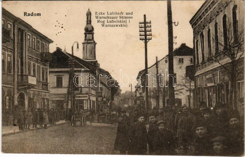 Radom, Ecke Lubliner und Warschauer Strasse / Rog Lubelskiej i Warszawskiej / street, shops + ...