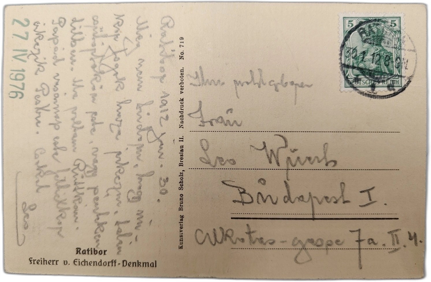 Ratibor - Racibórz - Pomnik Josepha von Eichendorffa, druk Breslau, ca. 1912