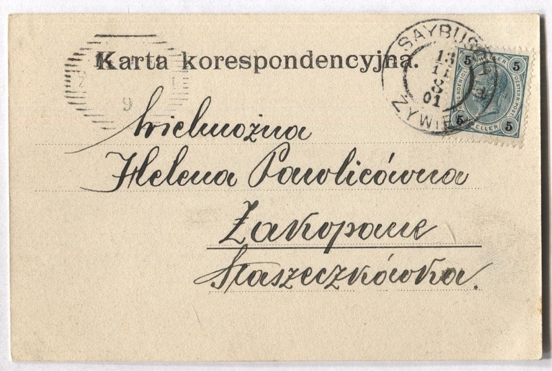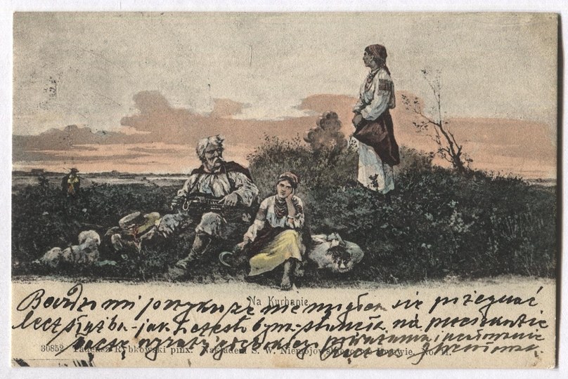 30852. Tadeusz Rybkowski pinx. Nakładem S. W. Niemojowskiego we Lwowie. No. 11. Z korespondencją i znaczkiem. Data stempla: 13 XI 1901. Niewielkie zabrudzenia tuszem, niewielkie zagięcia narożników - efekt przechowywania w albumie.