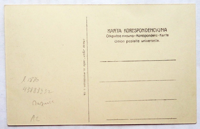 Zakład "Tęcza" Lwów ul. Mickiewicza L. 22. Przed 1918. Bez korespondencji i znaczka. Stan bardzo dobry.