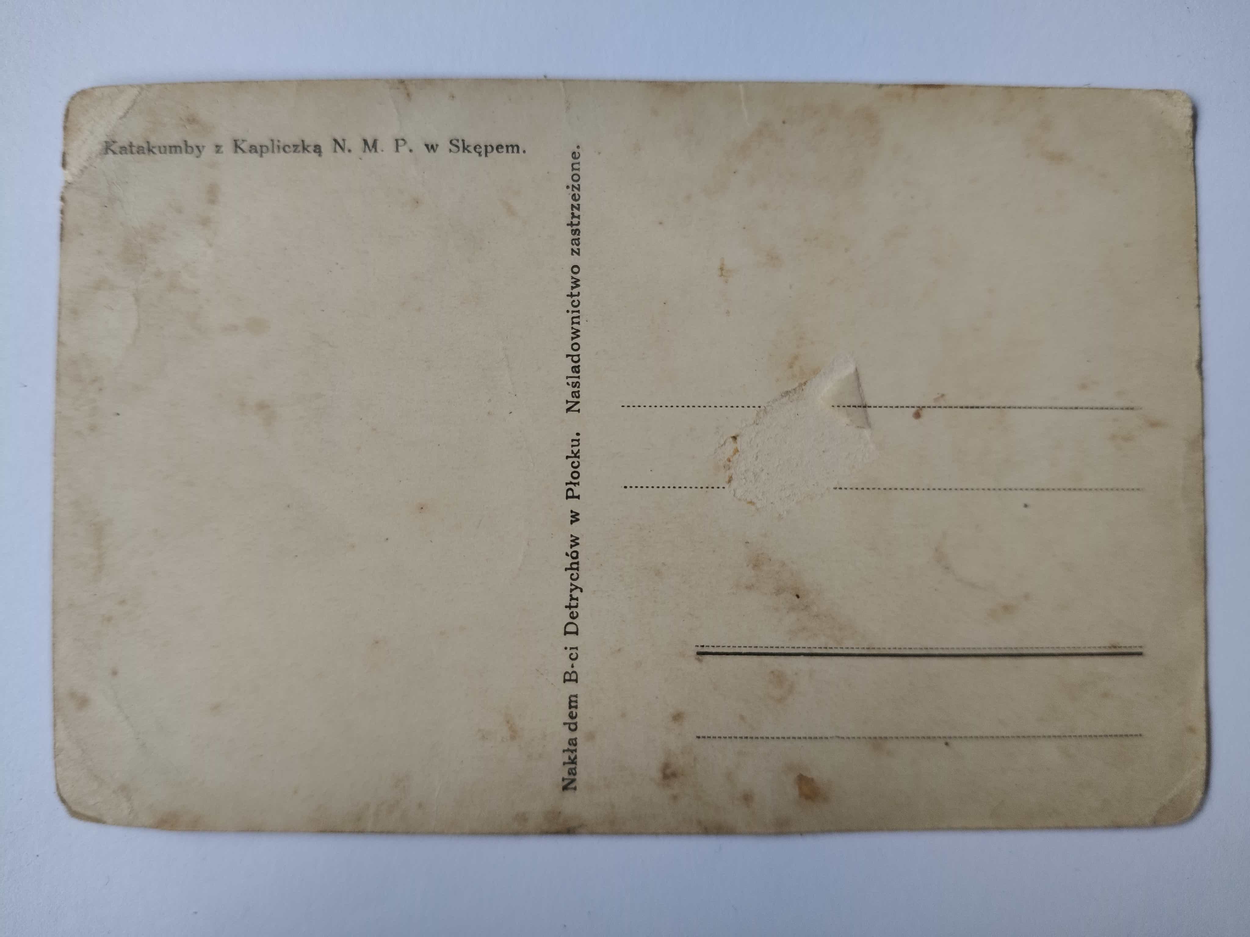 Przedmiotem licytacji jest oryginalna pocztówka. Stan zachowania oraz obieg widoczny na fotografiach,podniszczone narożniki, ubytek powierzchni rewersu, brak wad ukrytych.