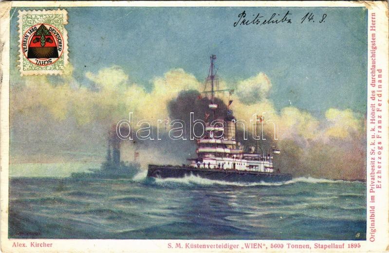 SM Küstenverteidiger "Wien" K.u.K. Kriegsmarine / SMS Wien az Osztrák-Magyar Haditengerészet Monarch-osztályú partvédő csatahajója / Austro-Hungarian Navy SMS Wien coastal defense ship. Österr. Flottenverein Serie II. Nr. 3. s: Alex Kircher (EK)