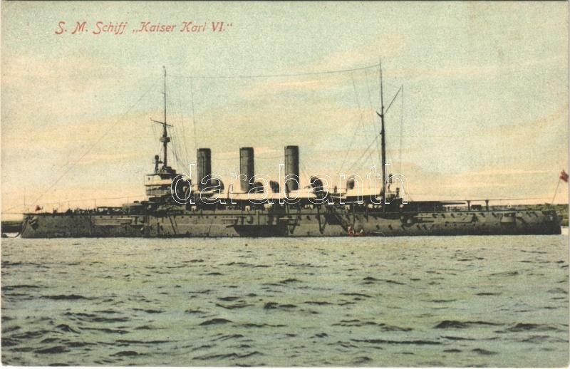 SMS Kaiser Karl VI az Osztrák-Magyar Haditengerészet VI. Károly-osztályú páncélos cirkálója Polában / K.u.K...