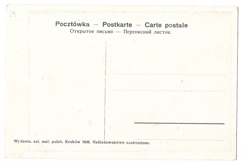 Wydawn. sal. mal. polsk. 1906. W tle krakowski Kopiec Kościuszki. Bez korespondencji i znaczka. Stan dobry.