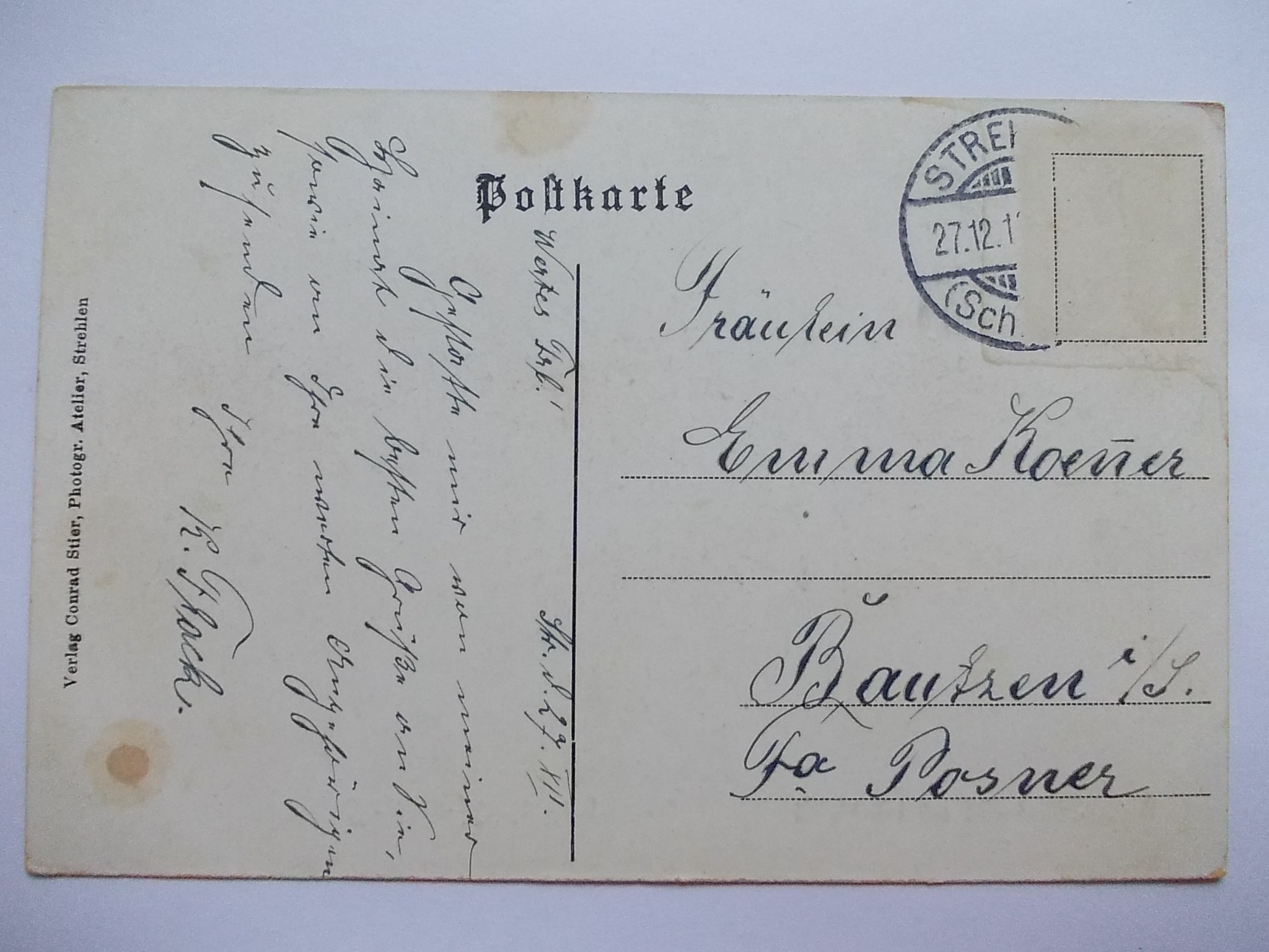 Przedmiotem licytacji jest oryginalna pocztówka. Stan zachowania oraz obieg widoczny na fotografiach, odklejony znaczek