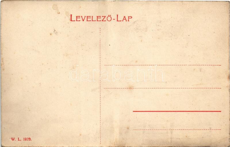 Szamosújvár, Gherla; látkép, vasútállomás, vagonok. W.L. 1879. / general view, railway station, wagons (fl...