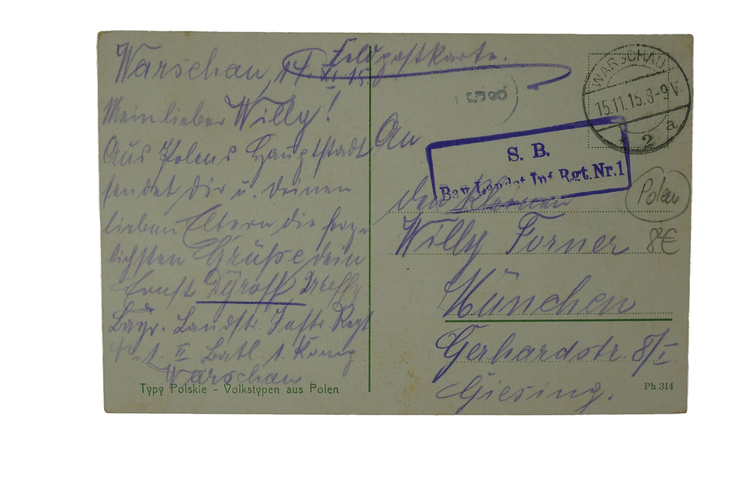 Typy Polskie Volkstypen aus Polen , obieg pocztowy 15.11.1915r., f. 9x14cm