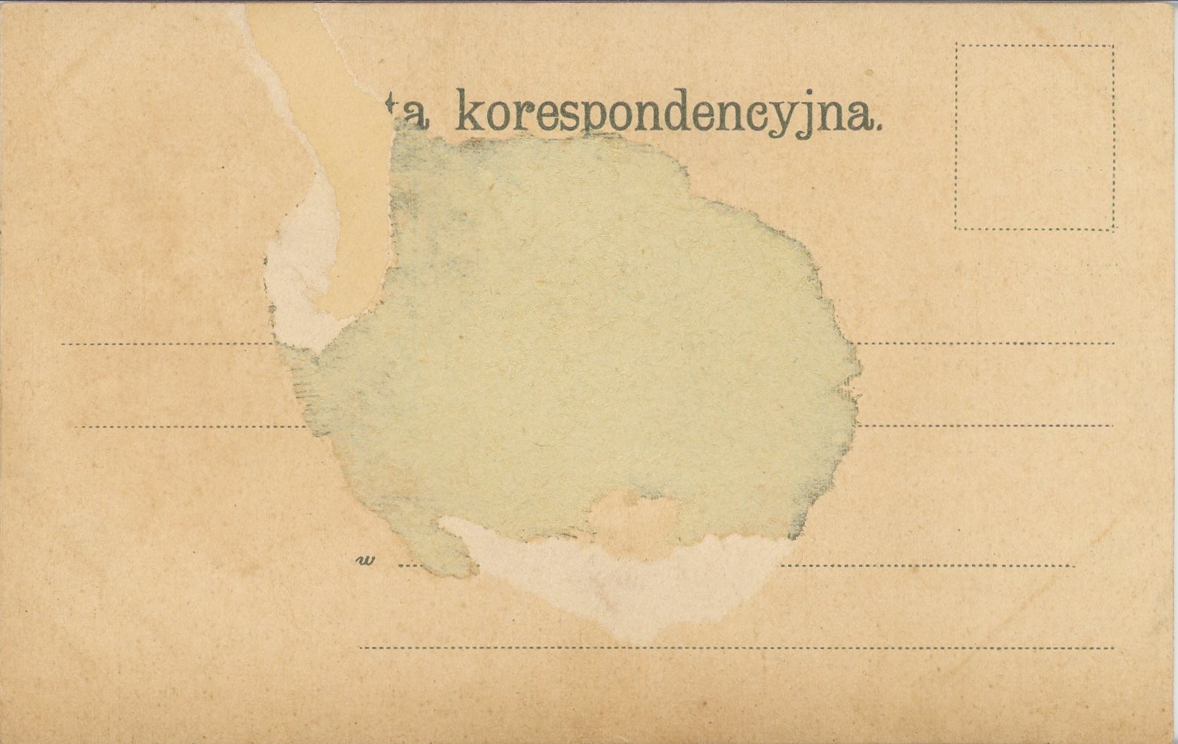 Wydawnictwo księgarni D. E. Friedleina w Krakowie. Kartka bez obiegu. Na odwrociu ślad poklejenia, pofałdowanie papieru.